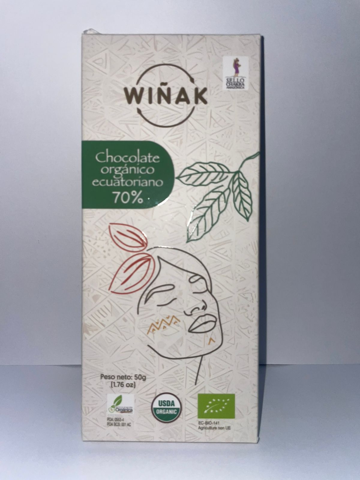 Chocolate elaborado por Wiñak con cacao orgánico de sus productores kichwas de la provincia de Napo. 70% de cacao